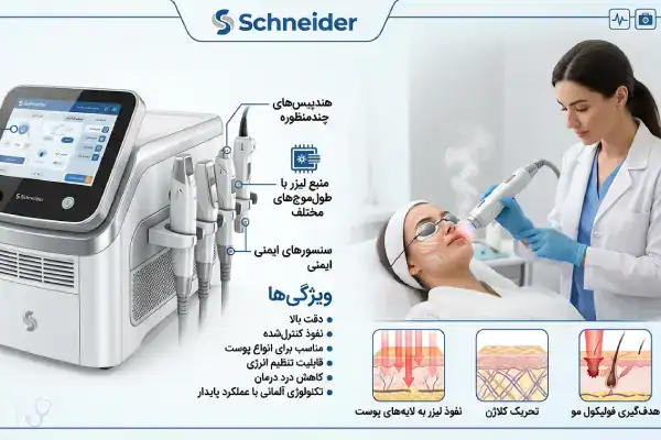 دستگاه لیزر اشنایدر حرفهای به عنوان انتخابی قابلاعتماد مطرح شده است؛ دستگاهی که با ترکیب چهار طول موج تخصصی، توان بالا و لیزربار میکروچنل، میتواند موهای نازک تا مقاوم را با دقت هدف قرار دهد و در عین حال درمانی سریع و کمدرد ارائه دهد. خنکسازی قدرتمند آن دما را در حد ایمن نگه میدارد و اجازه میدهد انواع پوست حساسترینها درمان راحتی را تجربه کنند. سرعت شاتزنی، رابط کاربری هوشمند و پایداری انرژی باعث شده این دستگاه برای کلینیکهای پرمراجعه گزینهای مقرونبهصرفه و آیندهدار باشد. در نهایت، اشنایدر حرفهای برای مراکزی که به دنبال نتیجه قطعی، رضایت بالای مراجعهکننده و بازگشت سرمایه سریع هستند، یک انتخاب حرفهای و مطمئن است. این چکیده، تصویر روشنی از کارایی، مزایا و دلیل محبوبیت این دستگاه ارائه میدهد.